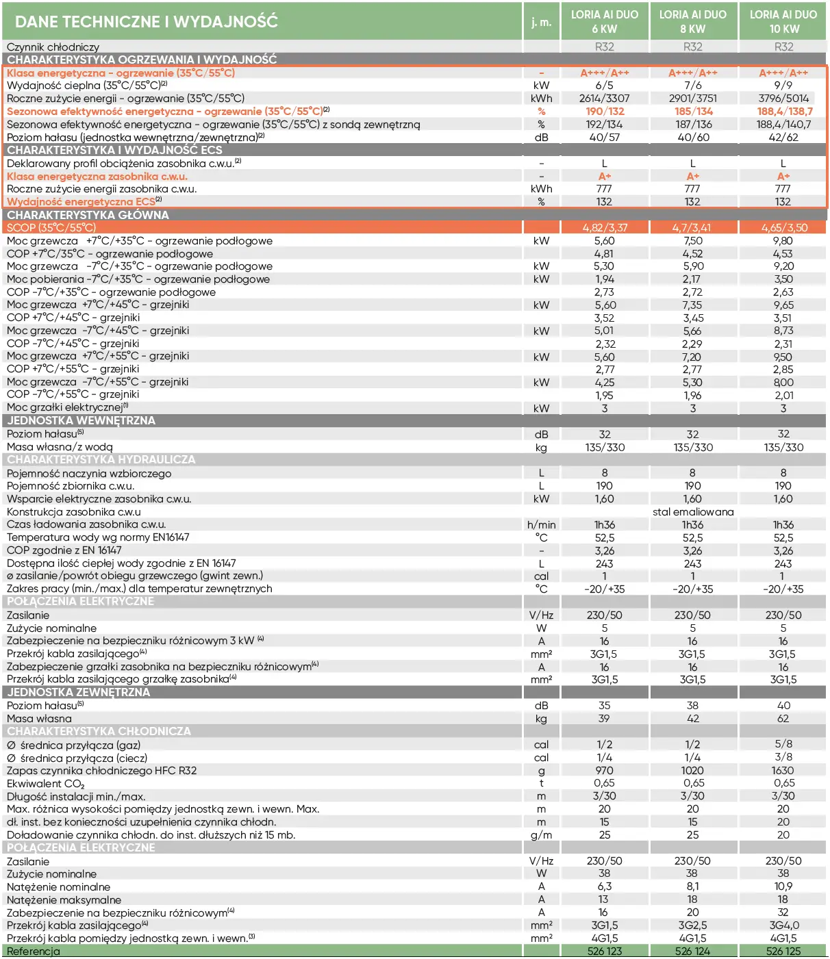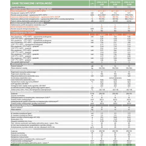 Roczne zużycie energii - ogrzewanie (35°C/55°C): 3796 / 5014 kWh
