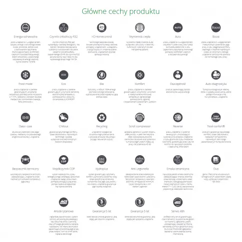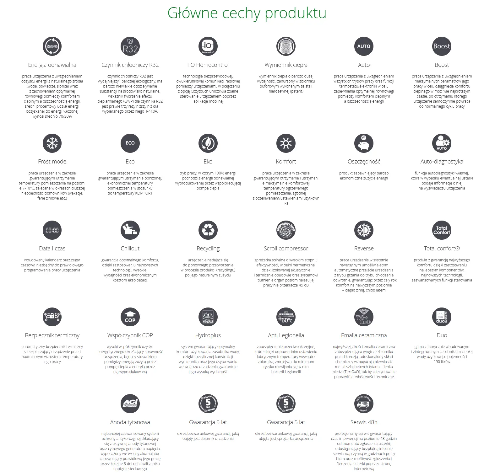Nowoczesna i ekologiczna metoda ogrzewania domu połączona z produkcją ciepłej wody użytkowej (wbudowany zbiornik 190L) gwarantująca bardzo niskie koszty eksploatacji.