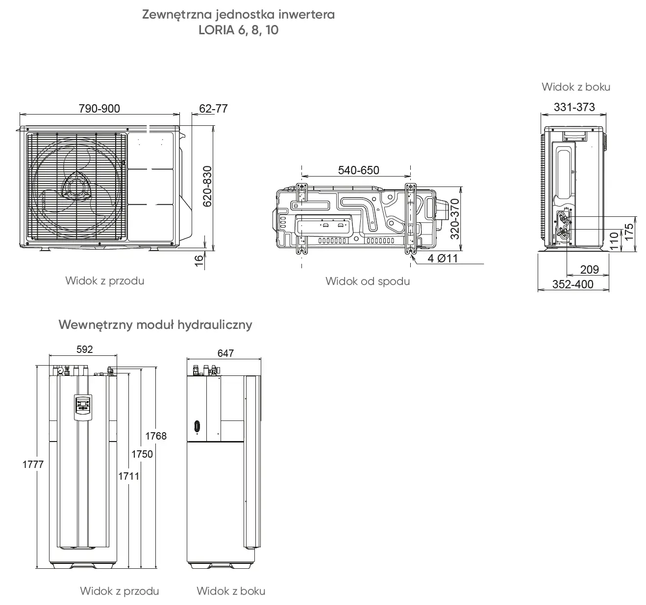 (**) wymiary: wys/szer/gł – dot. jednostki zewnętrznej, wymiary i waga jednostki wewnętrznej podane są w karcie katalogowej