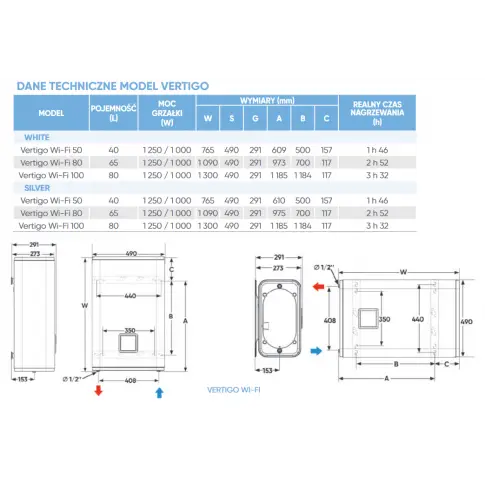 Vertigo 2 Wi-Fi 50 elektryczny ogrzewacz wody z cyfrowym sterowaniem i funkcją wi-fi, kolor: srebrny