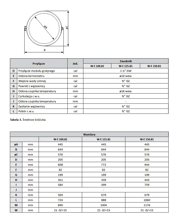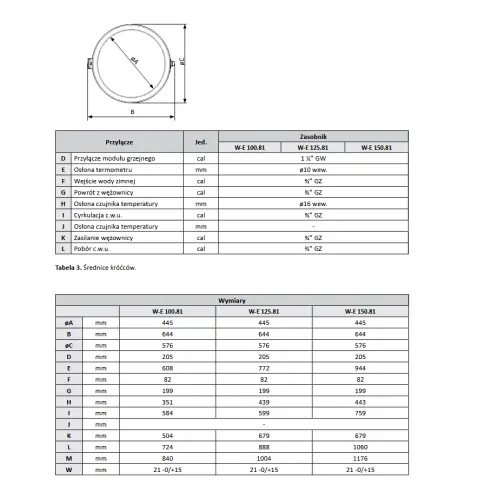 Maksymalna temp. zbiornik / wężownica: 85°C /110°C