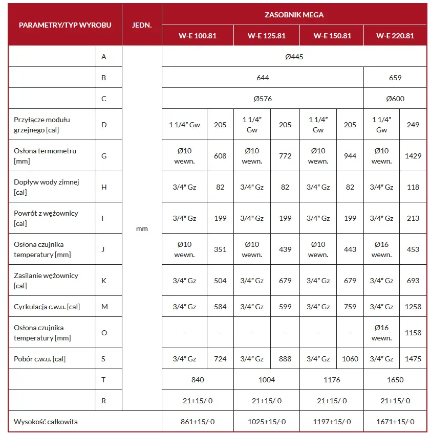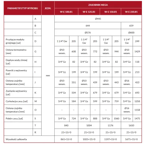 Zasobniki serii Mega pracują w pozycji stojącej, przeznaczone są do podgrzewania i magazynowania ciepłej wody na cele użytkowe przy współpracy ze wszystkimi rodzajami kotłów (na olej, gaz lub paliwa stałe)Zasobnik wykonany jest z wysokogatunkowej blachystalowej i wyposażony jest w wężownicę spiralną, która może współpracować z różnymi źródłami ciepła np. kocioł c.o., system solarny, kominek z płaszczem wodnym itp. W każdej z wersji zbiornik ciepłej wody użytkowej zabezpieczony jest przed korozją emalią ceramiczną oraz ochronną anodą magnezową. Wężownica nie jest wewnętrznie zabezpieczona antykorozyjnie. Izolację cieplną zbiornika stanowi specjalnie dobrana izolacja, która zapewnia bardzo dobre właściwości termoizolacyjne urządzeń. Zasobniki posiadają estetyczną obudowę z tworzywa sztucznego, wskaźnik temperatury oraz króćce do montażu elektrycznego modułu grzejnego i podłączenia cyrkulacji c.w.u.