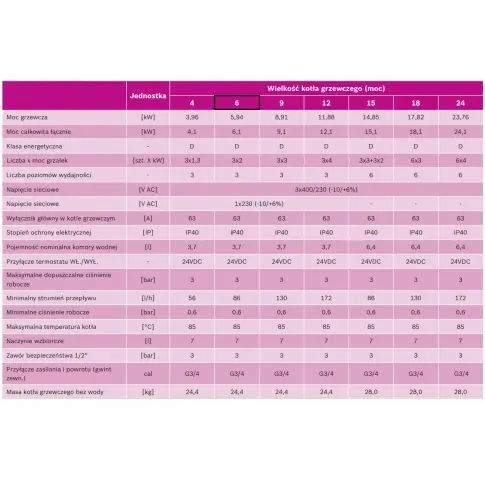 - szeroki zakres dostępnych mocy od 4 kW do 24 kW