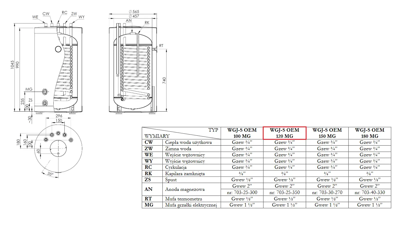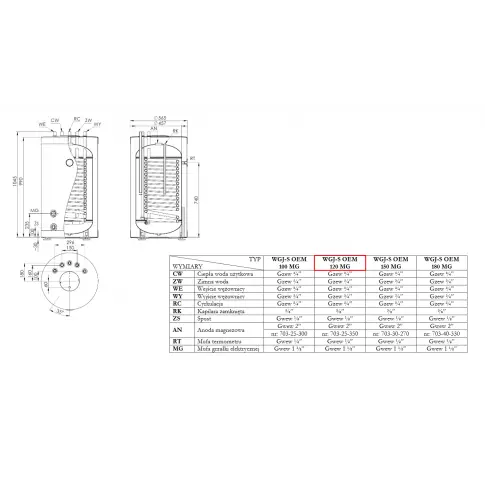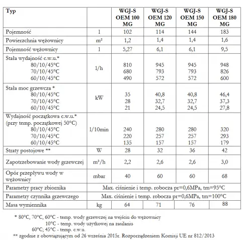 Przeznaczenie: Wymienniki typu WGJ-S OEM MG - stojące ze wszystkimi przyłączami do góry, przeznaczone są do podgrzewania i przechowywania ciepłej wody użytkowej na potrzeby mieszkań, domów jedno i wielorodzinnych oraz innych obiektów wyposażonych w niskotemperaturowe kotły wodne dowolnego typu.
