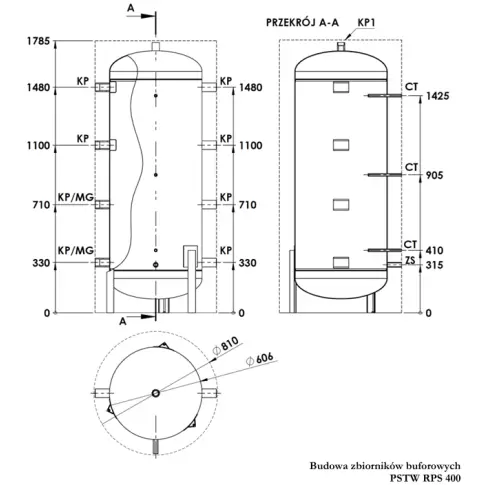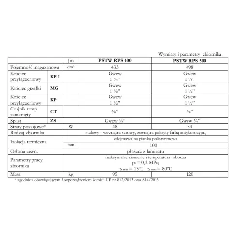 Zbiorniki buforowe typu PSTW RPS przeznaczone są do gromadzenia, przechowywania i przekazywania nadmiaru ciepłej wody grzewczej lub innych płynów dopuszczonych do kontaktu ze stalą czarną uzyskanych z różnych źródeł ciepła kotłów c.o., pomp ciepła, kominków, kolektorów słonecznych. Szczególnie dedykowane do urządzeń wysokotemperaturowych takich jak: kotły zgazowujące drewno, pelletowe, zasypowe ecodesin , eko-groszkowe, kominki z płaszczem wodnym itp. Zbiorniki buforowe stanową zabezpieczenie instalacji c.o. – przejmują różnicę pomiędzy mocą cieplną kotła i mocą oddawaną do układu grzewczego.