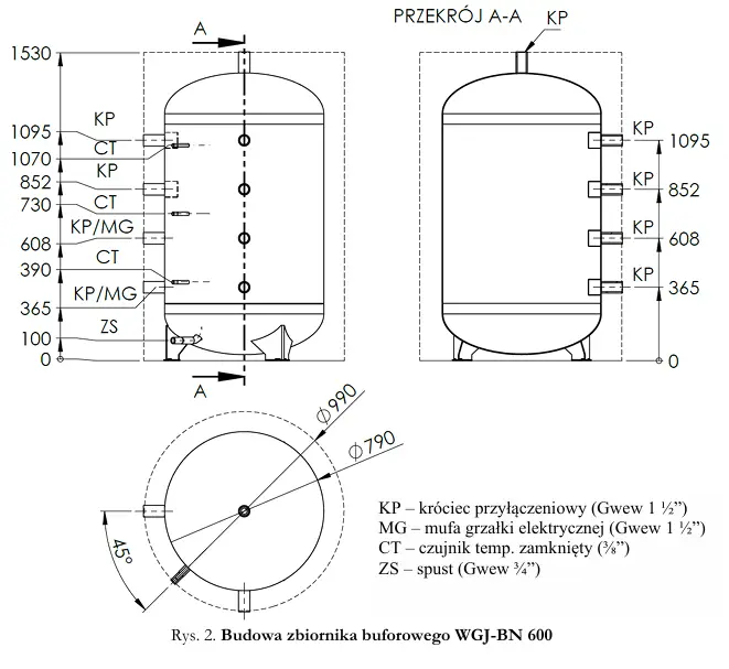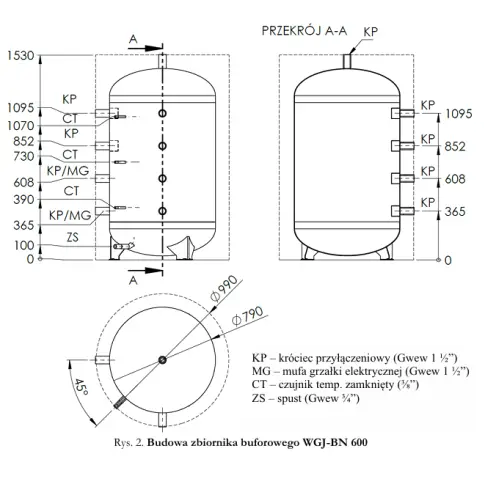 Zbiorniki buforowe przeznaczone są do gromadzenia, przechowywania i przekazywania nadmiaru ciepłej wody grzewczej lub innego czynnika grzewczego. Pracują m.in. w układach z pompami ciepła, kotłami pelletowymi, biomasowymi, zgazowującymi drewno i innymi źródłami ciepła dopuszczonymi do kontaktu ze stalą czarną. Stanowią zabezpieczenie instalacji c.o. - przejmują różnicę pomiędzy mocą cieplną kotła i mocą oddawaną do układu grzewczego. Zapewniają optymalne działanie instalacji grzewczej co ma wpływ na efektywność energetyczną. Stosowanie zbiorników buforowych ma pozytywny wpływ na żywotność źródła ciepła. Maksymalne ciśnienie pracy zbiornika wynosi 0,3 MPa. Zbiorniki buforowe wykonane są z blachy stalowej czarnej. Izolację termiczną buforów stanowi warstwa 10 cm zdejmowalnej pianki polistyrenowej. Osłonę izolacji termicznej stanowi płaszcz z laminatu.