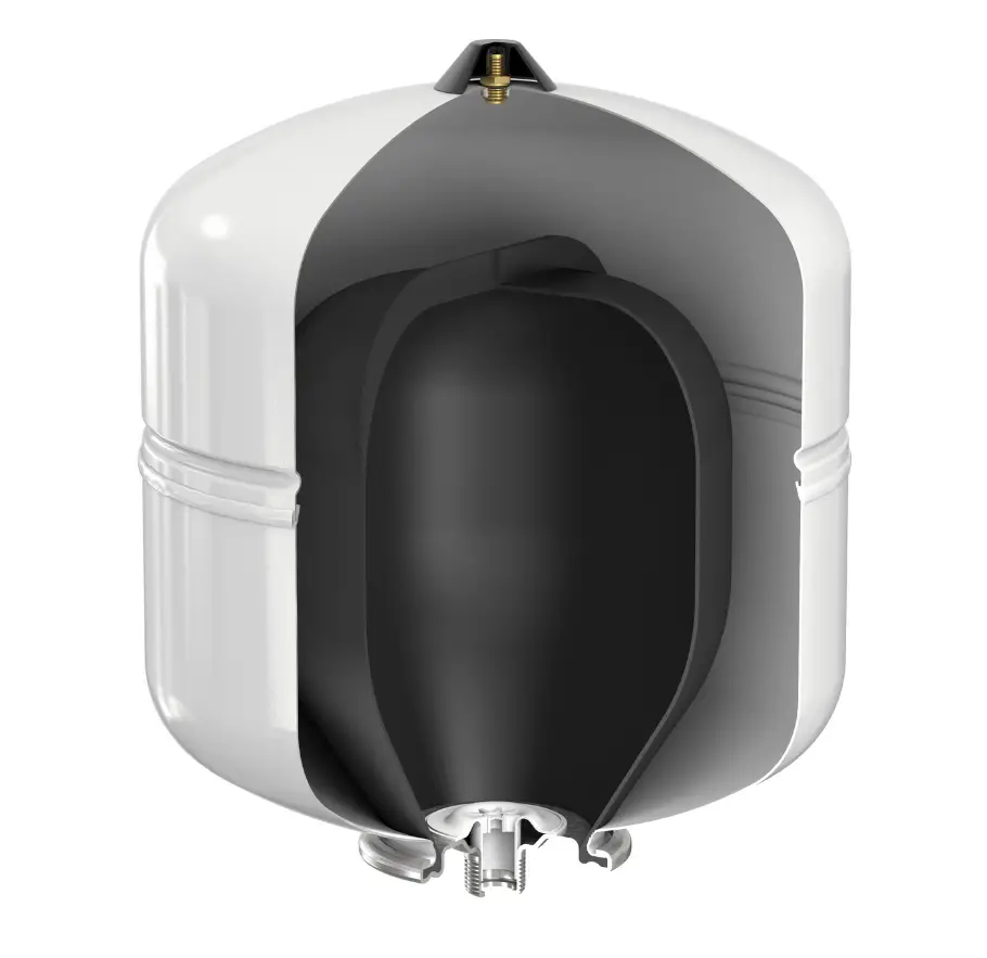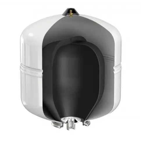 Zastosowanie i zasada działania: Gdy wzrasta temperatura w instalacji, zwiększa się objetość zładu. Zmiana objętości wody instalacyjnej przechowywana jest tymczasowo w naczyniu wzbiorczym, aby utrzymać ciśnienie w instalacji na właściwym poziomie.