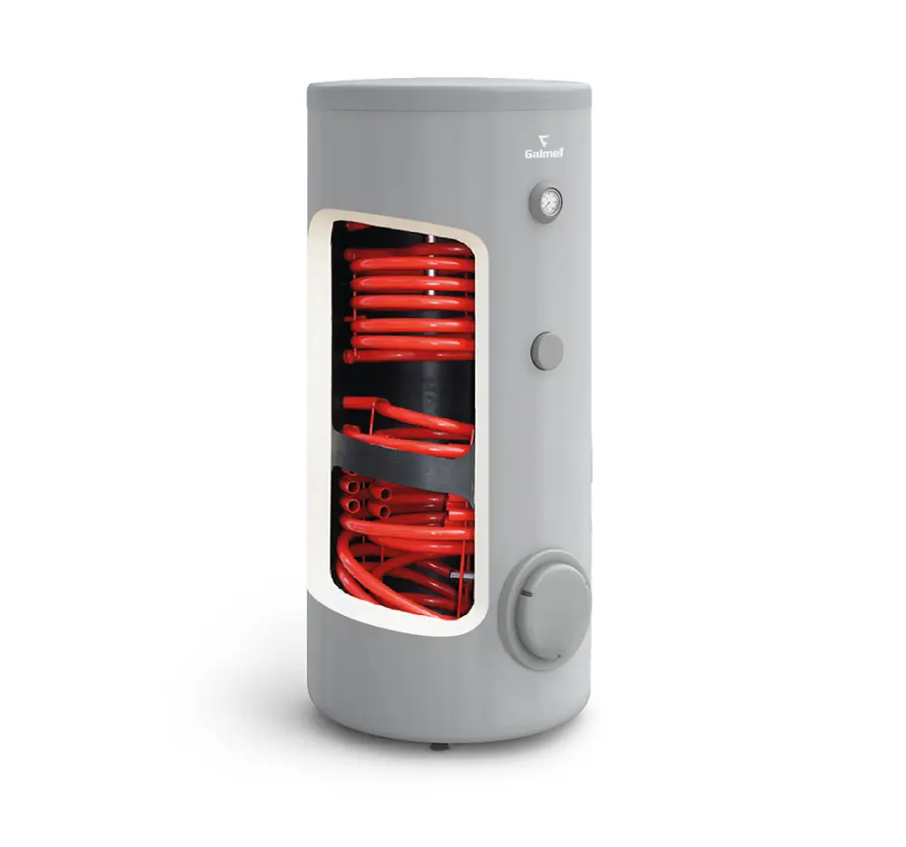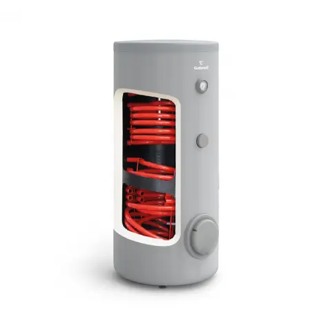 W dolnej części zbiornika znajduje się również wężownica dodatkowa, przeznaczona do zasilania przez dodatkowe źródła ciepła, takie jak np. kominek, kocioł c.o. Wężownica zasilana przez kocioł centralnego ogrzewania umieszczona jest w części górnej zbiornika co pozwala na dogrzanie wody bezpośrednio w miejscu jej pobierania. Źródłem ciepła wspierającym lub zastępującym pracę wężownic spiralnych może być: izolowany komplet grzewczy GE lub zastaw grzałek na flanszy, instalowany w otworze rewizyjnym.