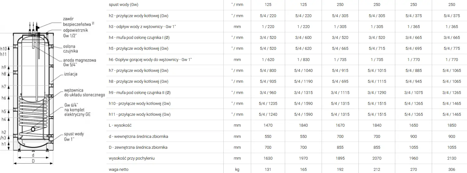 - Zabezpieczenie emalią ceramiczną EXTRA GLASS® i anodą.