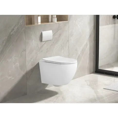 Bezkołnierzowa miska WC Tinos o owalnym kształcie to klasyczna propozycja, która będzie pasować do łazienki urządzonej w każdym stylu. Brak kołnierza niweluje trudno dostępne zakmarki, przez co mikroelementy nie mają się gdzie osadzać, a to czyni miskę rozwiązaniem higienicznym i łatwym do utrzymania w czystości. Całość wzbogaca wolnoopadająca, wypinana deska.