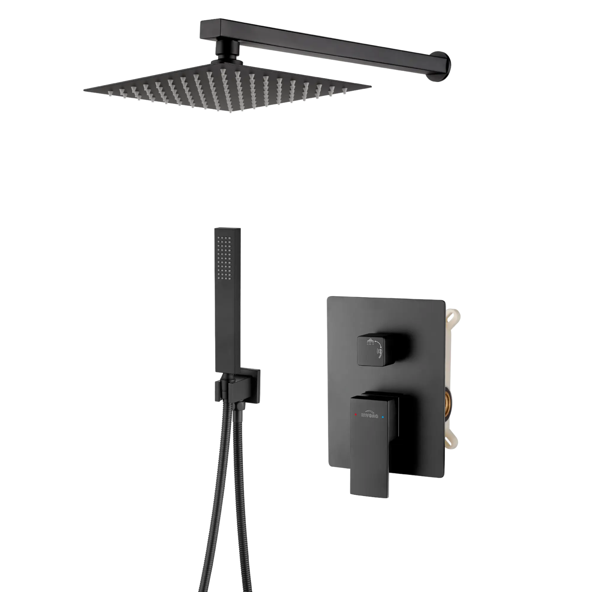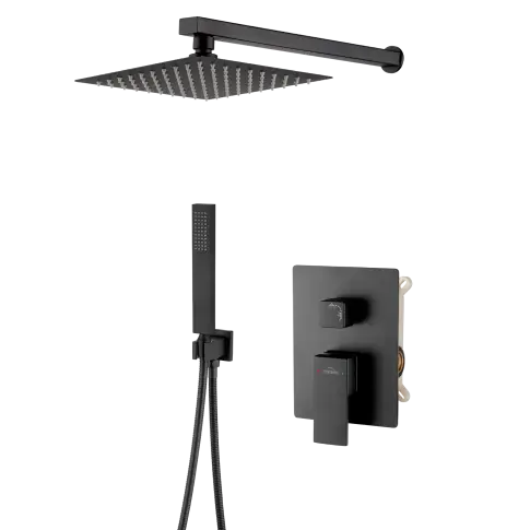 Zestaw podtynkowy Paros to kompleksowe rozwiązanie, które w pełni wyposaża strefę prysznica, łącząc nowoczesny design z najwyższą funkcjonalnością. Ten zestaw jest idealnym rozwinięciem jednej z topowych serii armatury marki Invena, gwarantując spójność stylistyczną i niezawodność. W skład zestawu wchodzi kwadratowa, deszczownica slim o wymiarach 20 x 20 cm, wykonana z wysokiej jakości stali nierdzewnej i wyposażona w system anti-calc, który ułatwia utrzymanie jej w czystości. Ramię natryskowe o długości 40 cm idealnie komponuje się z deszczownicą, zapewniając optymalny zasięg i komfort użytkowania. Kluczowym elementem zestawu jest 2-funkcyjna bateria natryskowa podtynkowa, która umożliwia łatwe przełączanie między deszczownicą a słuchawką prysznicową. Słuchawka natryskowa o smukłym, nowoczesnym designie (3,5 x 22,0 cm) oferuje jeden, ale za to perfekcyjnie dopracowany strumień normalny. Wykonana z wytrzymałej stali nierdzewnej, także posiada system anti-calc, co sprawia, że jest łatwa w konserwacji.