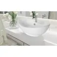 Feme to propozycja dla posiadaczy większej łazienki. Wyrazista forma nada aranżacji indywidualny charakter. Półka na baterię z kolei umożliwia szeroki wybór kranu do kompletu.