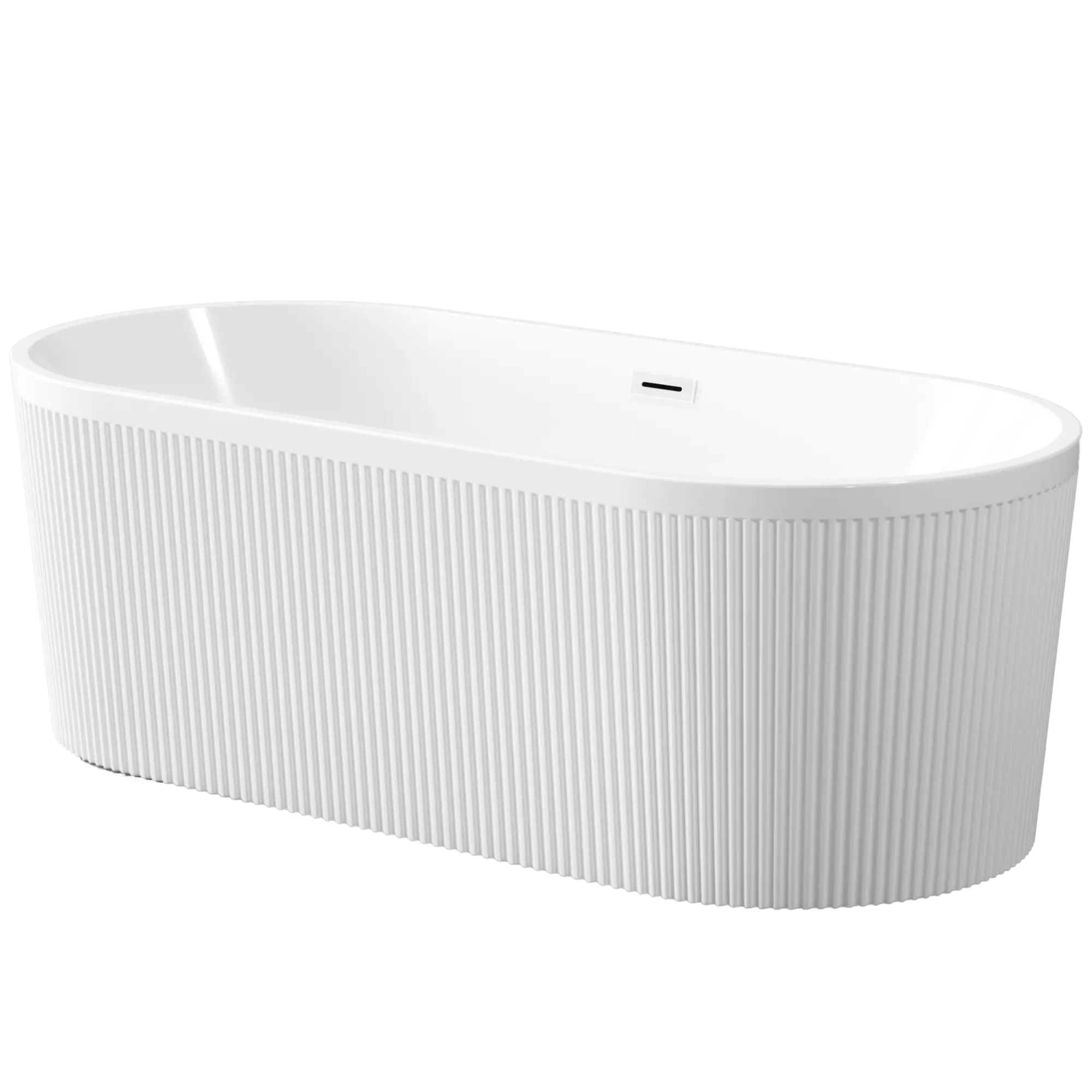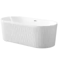 Zanurz się w stylu Glamour! Wolnostojąca wanna Glamour z ryflowaną fakturą to nowość w naszej ofercie! Uzupełnia kolekcję ceramiki utrzymaną w jednakowej, nietuzinkowej fakturze i dzięki temu daje szansę na stworzenie ciekawego wnętrza łazienki urządzonej w spójnym stylu! Faktura, w tym przypadku ryfle, to jeden z najgorętszych trendów przedstawianych na międzynarodowych targach wyposażenia wnętrz np. Salone del Mobile odbywających się w Mediolanie. Elegancki i jednocześnie nowoczesny design wniesie do każdej łazienki odrobiny luksusu i sprawi, że wolnostojąca wanna stanie się efektownym centrum tego pomieszczenia. Wolnostojąca, ryflowana wanna z kolekcji Glamour Invena o wymiarach 170 cm x 80 cm x 58 cm została wykonana z wysokiej jakości akrylu, co czyni ją odporną na uszkodzenia i zarysowania zewnętrzne. Wanna wyposażona została w syfon i odpływ wraz z korkiem i przelewem. Stelaż pozwala na wypoziomowanie wanny przy pomocy regulowanych punktów podparcia (nóżek). Tak przygotowany zestaw czyni ją kompletnym elementem wyposażenia łazienki i jest świetną propozycją, dla tych którzy chcieliby zanurzyć się w odrobinie luksusu!