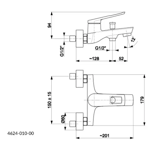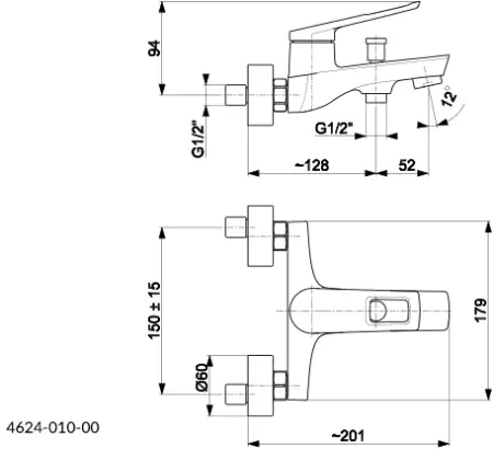 Bateria wannowa ścienna Amazonit, kolor: chrom