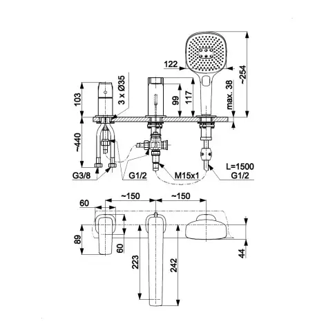 Ilość strumieni rączki natrysku: 3