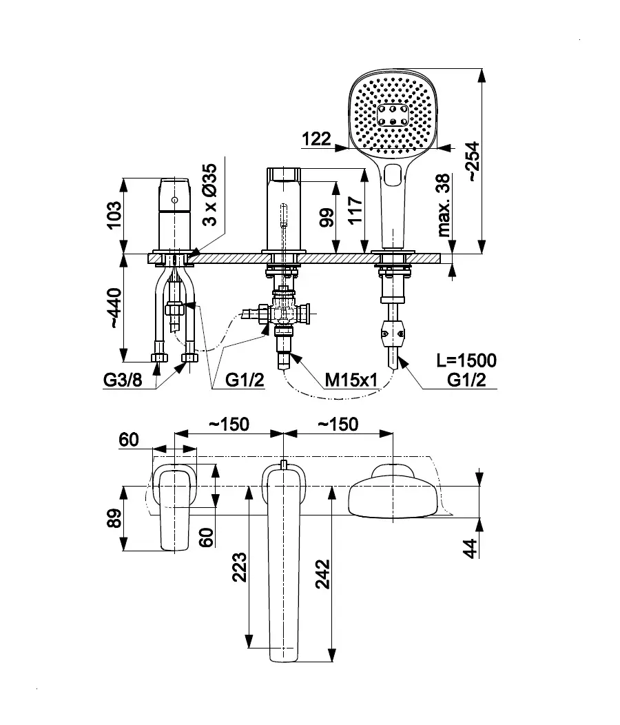 KFA Malaga bateria wannowa 3- otworowa, miedź 4525-210-34