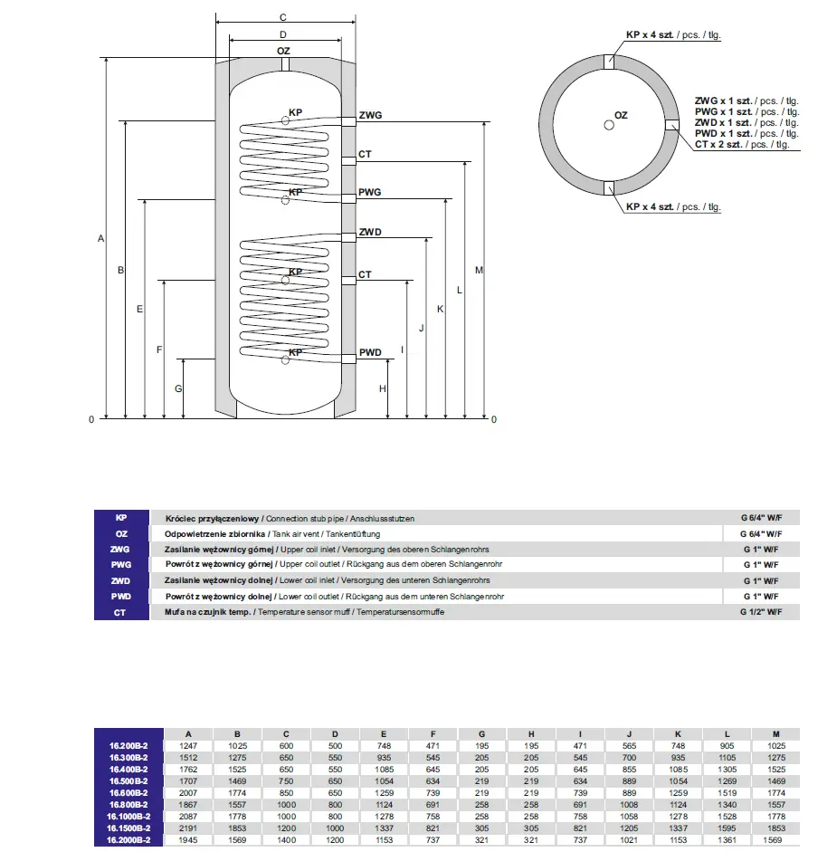 Lemet zbiornik buforowy z dwiema wężownicami 600L 16.600B-2