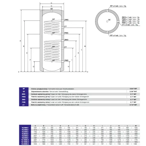 Maksymalna temperatura i ciśnienie robocze wężownic: 95°C/ 6 bar