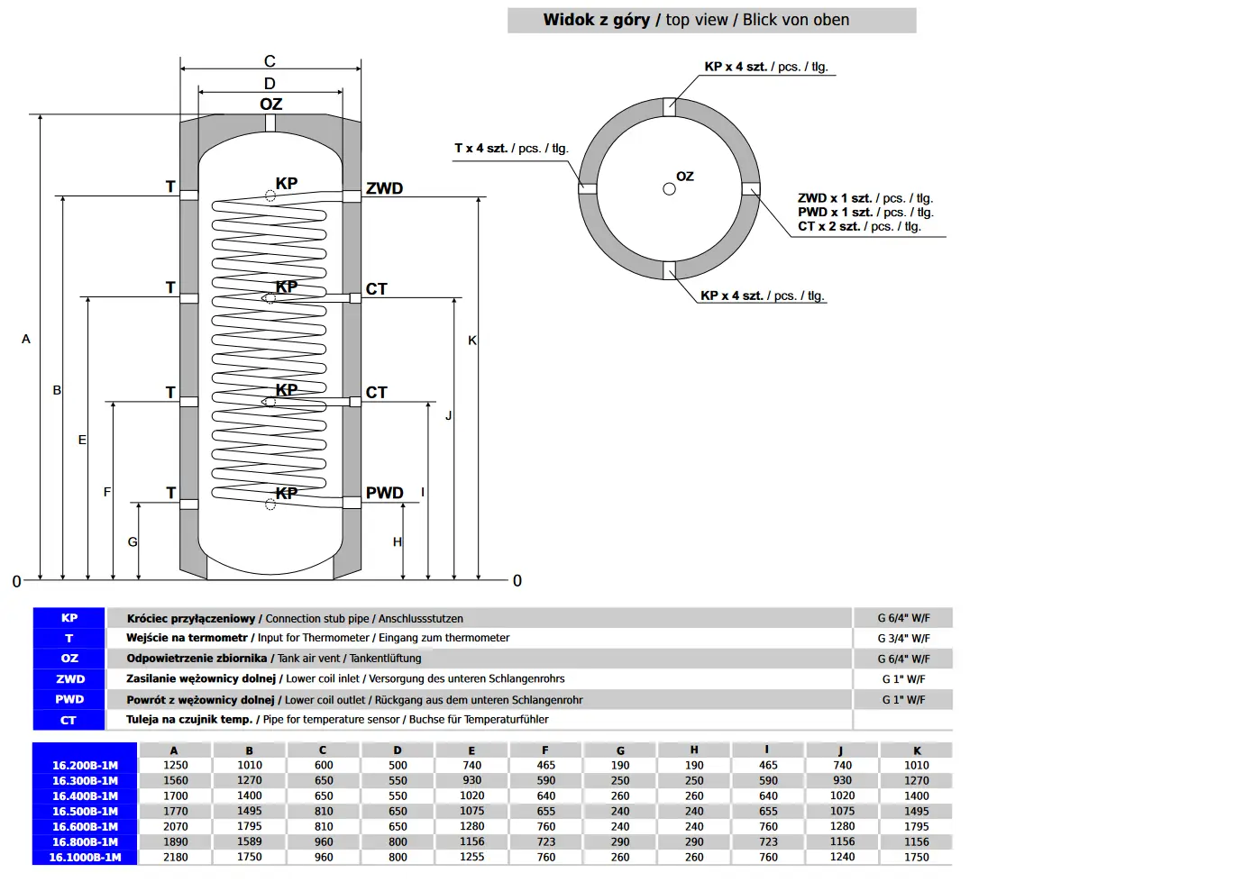 Maksymalna temperatura i ciśnienie robocze zbiornika: 95°C/ 3 bar